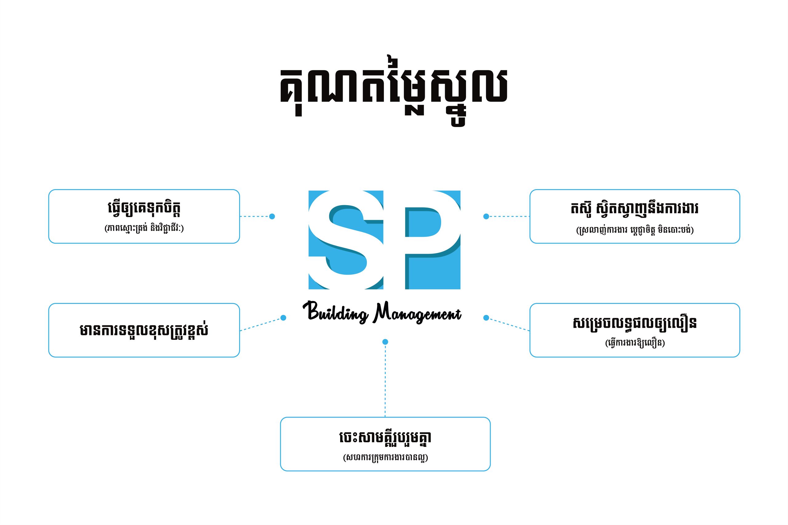 ក្រុមហ៊ុន អេសភី ប៊ីលឌីង មេនេចមុិន ត្រូវបានកកើតឡើងនៅថ្ងៃទី ១៦ ខែកុម្ភៈ ឆ្នាំ ២០១៨ ដែលនាំមកនូវបទពិសោធន៍ឧស្សាហកម្មជាង ៧ ឆ្នាំនៅក្នុងរាជធានីភ្នំពេញ។ យើងខ្ញុំពិតជាមានមោទនភាពចំពោះក្រុមហ៊ុនក្នុងការផ្តល់នូវ សេវាកម្មស្តង់ដារខ្ពស់បំផុតក្នុងការថែទាំអចលនទ្រព្យ និងការបំពេញតម្រូវចិត្តរបស់អតិថិជន។